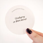Karteczki będą miłą pamiątka dla gości uroczystości Pierwszej Komunii. Z drugiej strony znajduje się tekst: „Dziękujemy za Waszą obecność”.