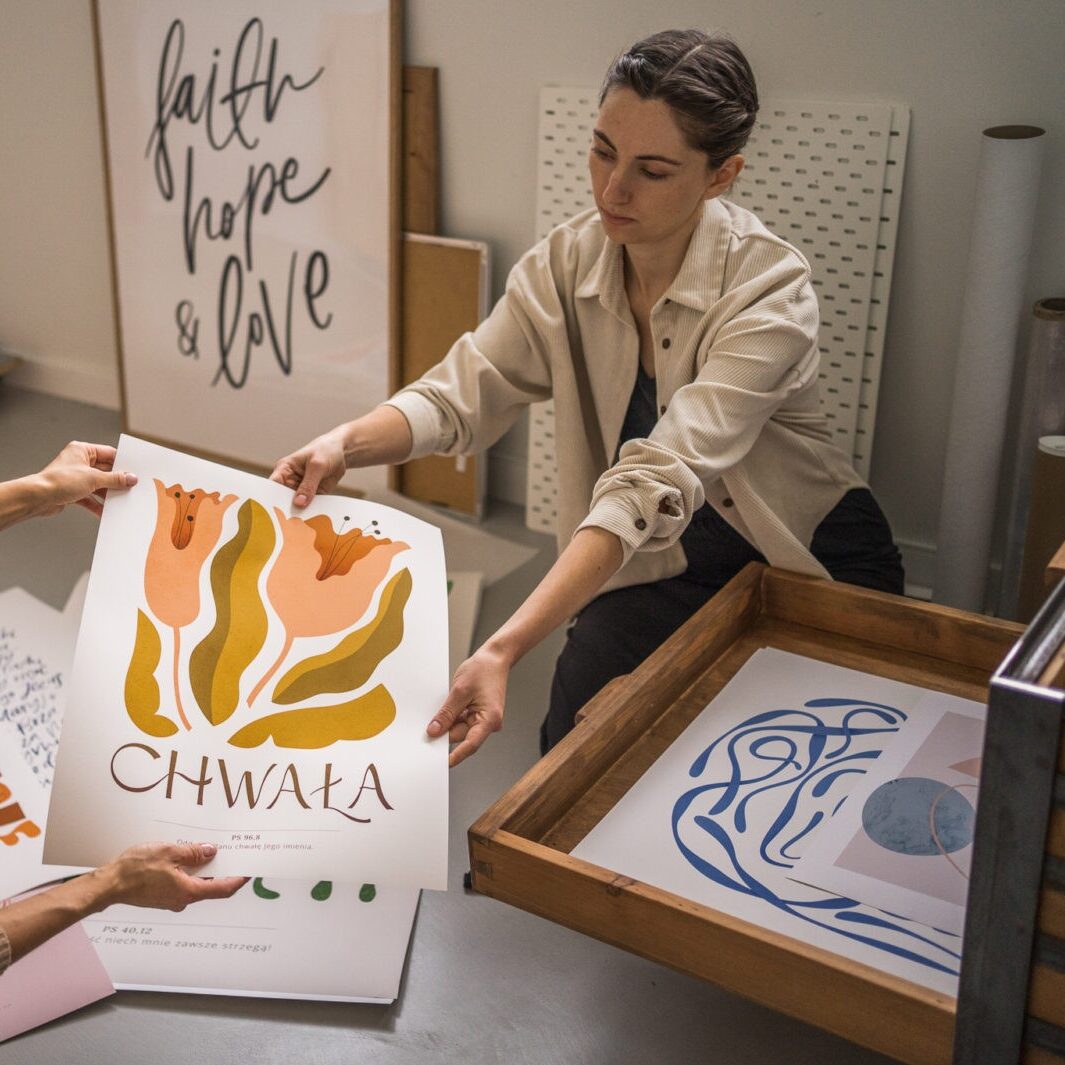 Wszystkie ilustracje, kaligrafie i liternictwo wykonujemy odręcznie, a następnie dopracowujemy w programach graficznych. Każda praca jest w pełni autorska i powstaje bez użycia narzędzi AI. Wszystkie produkty pakujemy ręcznie, z najwyższą dbałością o jakość i estetykę. Plakaty rolujemy, starannie zabezpieczamy bibułą i wysyłamy w twardej, tekturowej tubie – w przypadku zamówienia kilku sztuk pakujemy je razem. Pozostałe produkty wysyłamy w tekturowych pudełkach lub kopertach.