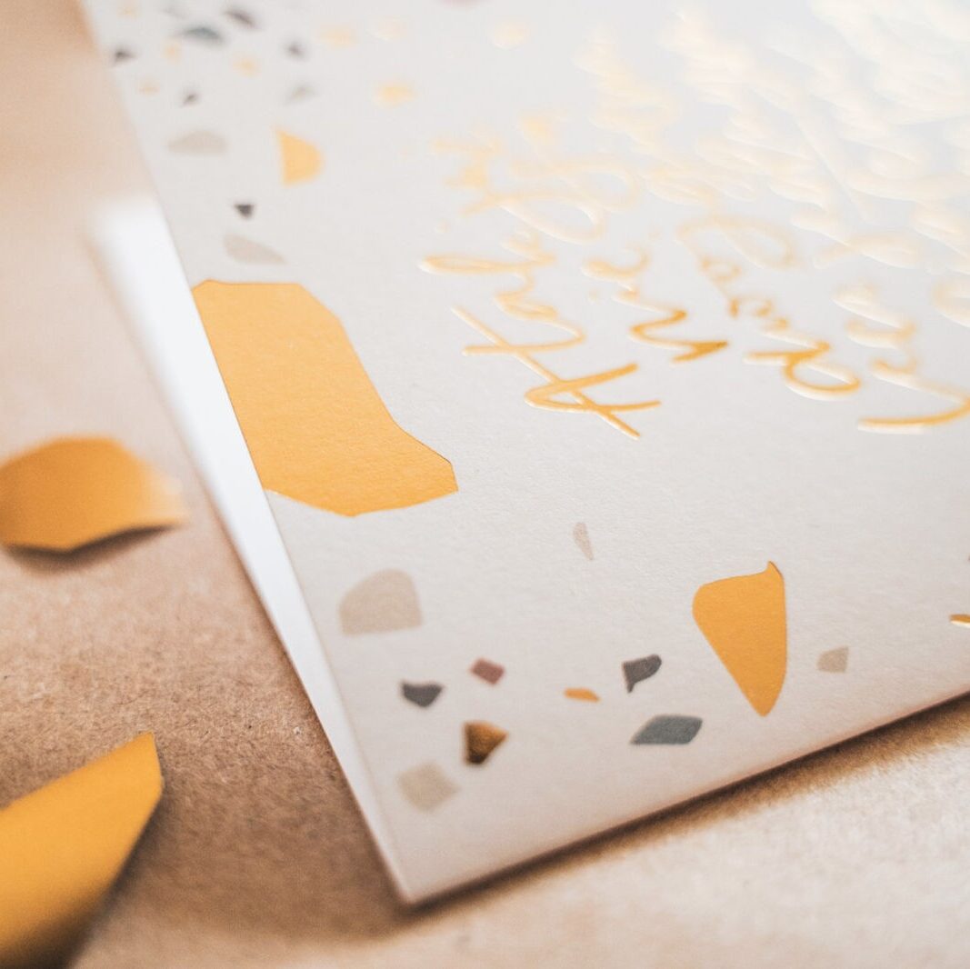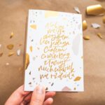 - kartka otwierana w formacie A6, w zestawie z kopertą;