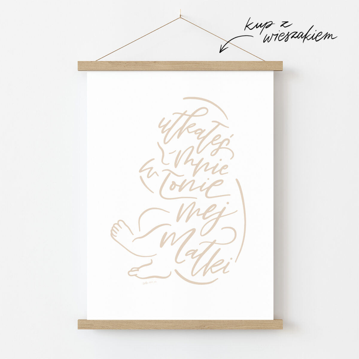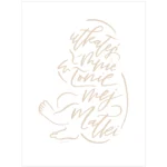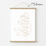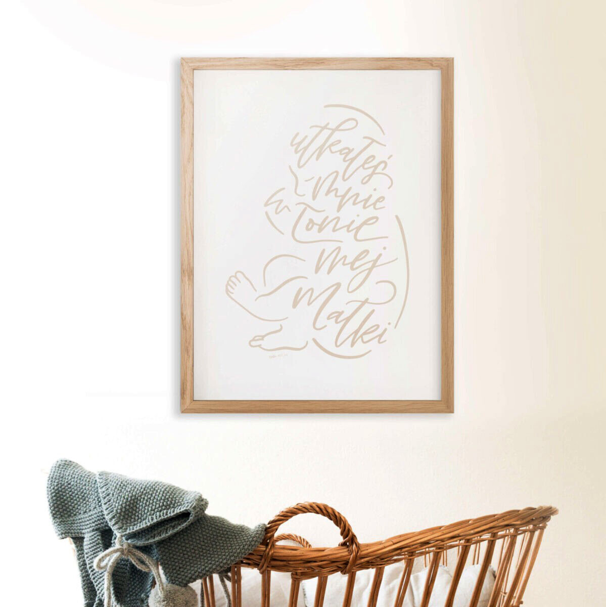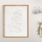 Delikatna kaligrafia będzie prezentowała się idealnie nad łóżeczkiem dziecka. W sam raz na prezent z okazji narodzin lub chrztu.